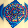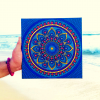 Blueberry is a type of blue color. Blue, it is a deep and soothing color associated with intelligence, calmness, logic, thoughtfulness, etc. The blueberry burst intricate mandala dot painting is easy on the eye. It is handpainted, and has been done on a stretched canvas. Stretched canvas is a canvas that transforms and stretches lovely photos and amazing designs over a wood frame ready for display. Canvas is typically stapled behind a frame for a firm and a tight fit. A stretched canvas is ready to be hanged on a straight wall.