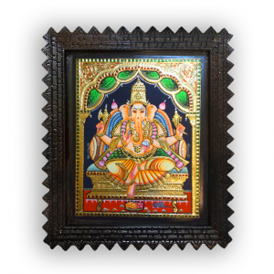Primary Material – 22 K Gold foil handpainted art on waterproof plywood , semiprecious stone and zircon stone work, chettinad teak wood frame with good quality transparent acrylic sheets