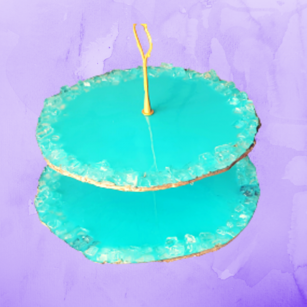 Arrange your desserts in the most beautiful possible way with this cake stand made of resin, pigments and crystal artwork. Grab this unique looking gorgeous looking cake stand that is available in two different variants of single and double tier. Make your desserts like cake look even more attractive with this beautifully made blue cake stand having crystal details at its edges. Buy this blue cake stand now and arrange your table with this beautiful cake stand with your beautifully made cake. Buy this to decorate your house or gift it to your baking friend and they are sure to love it. Enjoy special occasions by adding this cake stand on to your table and watch as it adds beauty and increases your appetite. Buy them now!