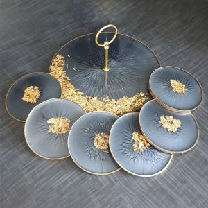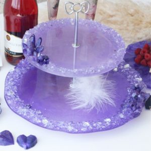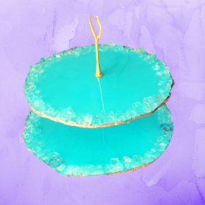 Are you looking for kitchenware to serve desserts? Then this exquisite looking cake stand made with resin and detail of crystal can be your go to choice. Arrange your desserts in the most beautiful possible way with this cake stand made of resin, pigments and crystal artwork. Buy this cake stand to decorate your interior as well as your handmade beautiful looking desserts. This can be a great choice to serve desserts on special occasions like birthdays, weddings or family gatherings. This cake stand is made with detailing and creativity using resin as the primary material. This white cake stand has a beautiful finish with pigments and crystal artwork with priority to detail along with a handle in brass to give it a complete and luxuries look. A perfect decorous piece of product to elevate the beauty of your interior. Place it in any interior and it is sure to give it a luxuries and happy finish. This product comes in two different variants that are a double tier or a single tier cake stand. Choose the one that best suits your interior and table and enjoy the desserts with the newness and uniqueness of the cake stand. This cake stand made with epoxy resin is sure to grab your attention with just a glance. Explore more at our store and find from a variety of colors in this decorous cake stand that suits your taste the best.
